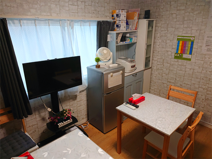 主に日常生活に関する相談・支援を行います。スタッフは常駐せず、介護サービスを受けたい場合は外部事業者を利用します。グループホームのスタッフは、必要に応じて健康面の相談、就労先との連携、緊急時の対応などを行います。